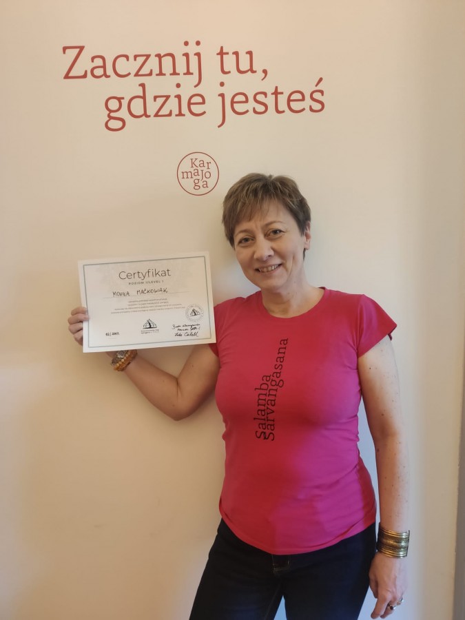 Dodam na zakończenie, że wszystkie rozmowy z komisją certyfikacyjną, dotyczące praktyki, były bardzo rzeczowe. W trakcie tych rozmów komisja sprawdzała to, czy rozumiem pracę w danej asanie. Co ważne, prowadzono ze mną rozmowę, a nie punktowano, co tam jeszcze trzeba poprawić. Spotkanie z tymi ludźmi przyniosło mi dużo satysfakcji, naukę, było cennym doświadczeniem. Te dwa dni procesu certyfikacyjnego pozwoliły mi przede wszystkim oddalić się od spraw życia codziennego, skupić na tym wewnętrznym procesie bardziej. Nie wiem, czy udałoby mi się osiągnąć taki rodzaj skupienia, gdyby to trwało krócej. Nie wiem. Wiem natomiast, że nie czułam przerażającego zacisku w jelitach, co niejednokrotnie zdarzało mi się przed wieloma egzaminami, do których w swoim życiu przystępowałam, a było ich niemało. Z pewnością ludzie, których spotkałam, z którymi mogłam wymienić poglądy, pośmiać się, pogadać tak po ludzku o wszystkim, a nie tylko o jodze, dali mi poczucie bezpieczeństwa właśnie TAM, GDZIE BYŁAM, W TAMTYM CZASIE. Chcę za to jeszcze raz podziękować. A może też, do tego właśnie DOJRZAŁAM…